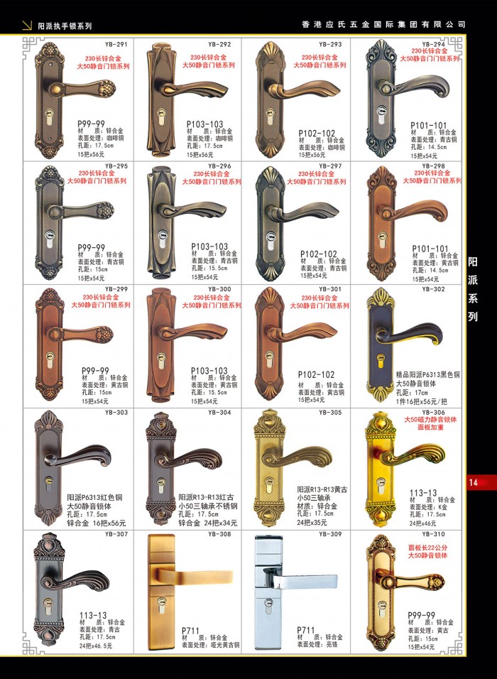 详细信息 阳派执手锁系列-14-应波五金 简介本页是香港应氏五金国际集团有限公司2020年最新彩页 阳派执手锁系列(第十四页) 图片为高清晰图片,请稍等。。。 ![]() |