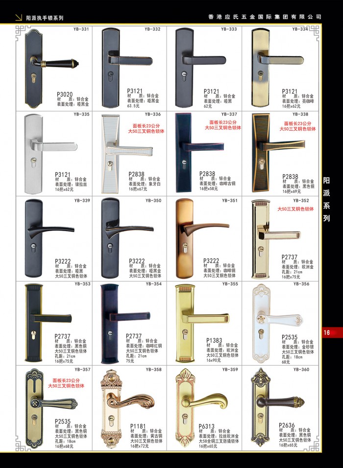 详细信息 阳派执手锁系列-16-应波五金 简介本页是香港应氏五金国际集团有限公司2020年最新彩页 阳派执手锁系列(第十六页) 图片为高清晰图片,请稍等。。。 ![]() ![]() |