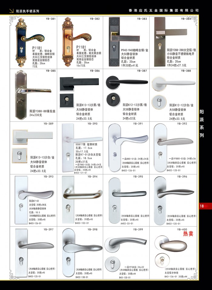 详细信息 阳派执手锁系列-18-应波五金 简介本页是香港应氏五金国际集团有限公司2020年最新彩页 阳派执手锁系列(第十八页) 图片为高清晰图片,请稍等。。。 ![]() |