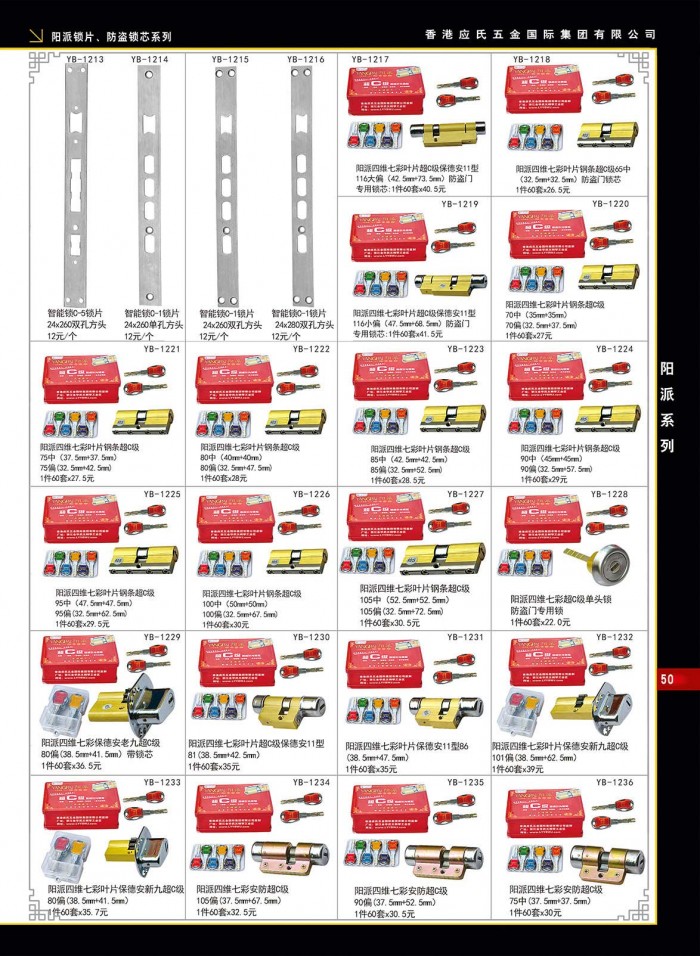 » 阳派锁片、防盗锁芯系列-50-应波五金