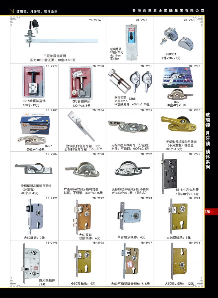 玻璃锁、月牙锁、锁体系列-126-应氏五金