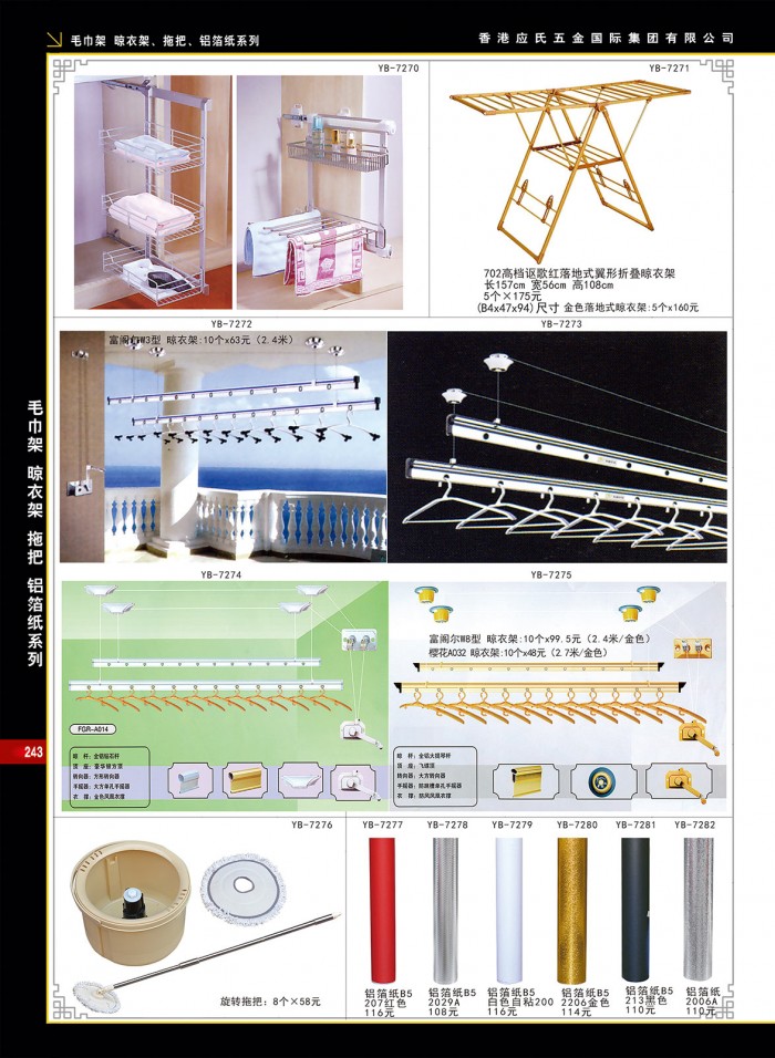 毛巾架、晾衣架、拖把、铝箔纸系列(第二百四十三页)